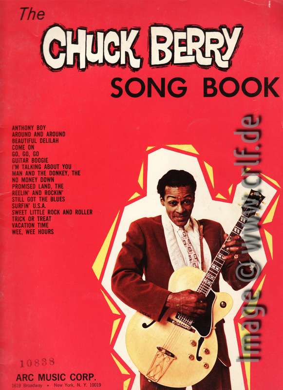 In the 1950's you got Chuck Berry's hits in the form of Sheet Music with just one song on a folded sheet. In the 1960's the first Chuck Berry songbooks appeared which included a collection of sheet music. The songbook Chuck Berry's Greatest Hits was published by Arc Music Corp. in 1964. This New York publishing company still controls some parts of Chuck Berry's work and is, by the way, lead by Marshall Chess, son of Leonard. This songbook contains a one-page biography along with words and music of 18 songs from Mabellene (sic) and other 1950's hits to his then latest and greatest such as Nadine and You Never Can Tell.